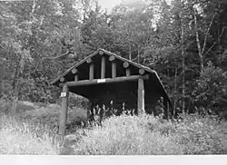The Upper Kintla Lake Patrol Cabin in Glacier National Park is a rustic backcountry log cabin. Built in 1931 to standard National Park Service plan G913, the cabin has a single room.[2] The cabin was modeled after similar cabins used at Yellowstone National Park, which were in turn similar to those used by the U.S. Forest Service, which resembled trappers' cabins.[3] The Upper Kintla Lake Patrol Cabin is actually situated on the eastern shore of Kintla Lake which is almost 2 miles (3.2 km) west of Upper Kintla Lake.