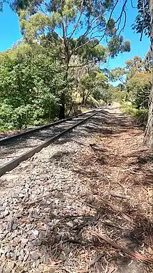 Opened prior to 17 April 1885,[2] the station consisted of one 81 metre platform with a waiting shelter. Prior to 1956 the station was quite substantial, with an enclosed waiting room and ticket office. There was a relatively short section of masonry platform (approx 20 m) and a long wooden section. In the Black Sunday bushfires of 1955 all but the masonry section of the platform was totally destroyed.
