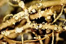 Usnea fulvoreagens is a species of beard lichen in the family Parmeliaceae. It was first described by Finnish lichenologist Veli Räsänen in 1931 as a variety of Usnea glabrescens.[2] He raised it to distinct species status in 1935. The lichen has a shrubby thallus that is richly branched, and bases that are blackened. The presence of norstictic acid is often used to differentiate this species from other similar species. It has a widespread distribution in Europe.[3]