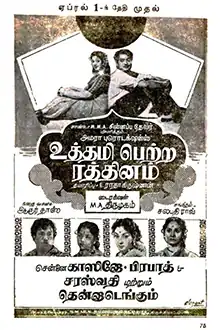 Uthami Petra Rathinam (transl. A Precious Gem) is a 1960 Indian Tamil-language drama film directed by M. A. Thirumugam and written by Aaroor Dass. The film stars K. Balaji, Malini and P. Kannamba, with T. K. Ramachandran, M. N. Rajam, Pandari Bai, S. V. Sahasranamam, Kuladeivam Rajagopal and Manorama in supporting roles.[1] It was released on 1 April 1960, and failed at the box office.