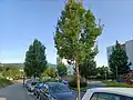 The neighbourhood is built around a large green area, the Valdecorvos Park, to the south of which flows the Valdecorvos stream. It is the largest park in the east of the city. In addition to the trees, it has pedestrian paths and a wooden bridge to cross the Valdecorvos stream, a footbridge on stilts to connect it to the Costado area and wooden stairs to Prado Novo street. It has a viewpoint in the northern part with views to the east of the city.[12] There is an oak grove and the viewpoint is designed as a rest area with urban furniture.[11] In addition to this park, there are gardens linked to each block of buildings and, to the east of the neighbourhood, the As Regas park.[3]