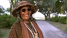 Irma P. Hall as Minerva, the character based on Boles, at the gates to Bonaventure Cemetery in Midnight in the Garden of Good and Evil (1997)