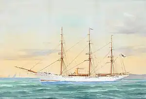 Her first owner was Capt. J. F. Laycock of Bawtry, Portsmouth, a British Army officer and Olympic sailor. Laycock, a member of the Royal Yacht Squadron at Cowes,[2] he commissioned Ramage & Ferguson of Leith in 1892 to build him a steel auxiliary three masted steam yacht. Laycock had envisioned his own private clipper ship, a three-quarter sized version of the Cutty Sark. He drew up some basic outline plans, and handed them over to Mr. W. C. Storey, who produced detailed plans for both the yacht, and its auxiliary power unit. The design had its critics, but the ship was found to have excellent sailing qualities. She is believed by many to have been the finest example of a steam auxiliary ever built.[3]
