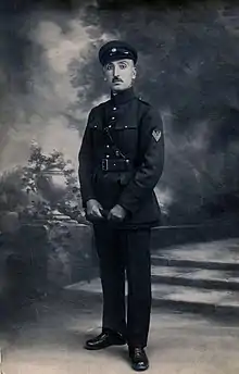 Valerian "Valiko" Jugheli and his family were evacuated from Sokhumi to Kutaisi, after the First World War broke out due to the fear of an inevitable Ottoman invasion. Valiko Jugheli successfully completed his work called "Heavy Cross",[3] where his life in the Democratic Republic of Georgia is more informative than before.[4] After the Soviet occupation of Georgia in 1921, Jugheli went to the École spéciale militaire de Saint-Cyr for military education. After this event, he returned to Soviet-occupied Georgia and joined an unsuccessful rebellion against Soviet occupation forces. 36 years old, Jugheli was soon arrested and executed by the Soviet Cheka on 30 August 1924.[5][6]