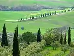 | Mediterranean cypress | All over the park. | Greece, Iran and Turkey | Evergreen tree up to 30 m tall with dark, thin and superficially wrinkled bark. Green leaves arranged in four opposite rows of two by two. | ![]() |