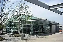 Panorama City station opened with the inauguration of CalTrain on October 18, 1982.[7] The short-lived service ended on March 1, 1983.[8] Amtrak service to Van Nuys (the former CalTrain station) began on June 26, 1988, when one San Diegan round trip was extended to Santa Barbara.[9] Metrolink began Ventura County Line service with a stop at Van Nuys on October 26, 1992.[10] A modern glass-and-concrete Van Nuys station building, funded by Caltrans, opened on December 18, 1995.[11]