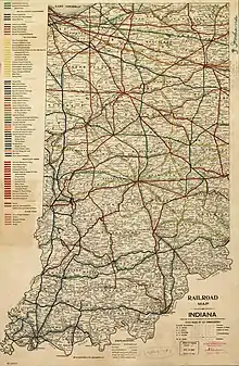 The Terre Haute & Indianapolis Railroad, the St. Louis, Vandalia & Terre Haute Railroad, the Terre Haute & Logansport Railway, the Logansport & Toledo Railway, the Indiana & Vincennes Railroad were all merged on January 1, 1905, to form the Vandalia Railroad Company. The railroad connected Indianapolis in the east with St. Louis in the west and South Bend and Butler in the north with Vincennes in the south.[2]