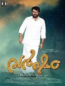 Varsham (Rains) is a 2014 Malayalam drama film written and directed by Ranjith Sankar.[2] The film stars Mammootty and Asha Sarath in the main roles,[3] T. G. Ravi as the antagonist,[4] along with Mamta Mohandas, Govind Padmasoorya and Master Prajwal in major supporting roles. It features a film score and soundtrack by Bijibal.[5] Varsham released worldwide on 6 November 2014. The film received generally positive reviews from critics.[6][7]