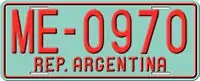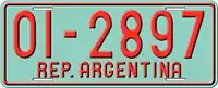 Non-diplomatic embassy staff (personal auxiliar) | PA-1234 | orange on teal; "Rep. Argentina" legend; longer plate size |