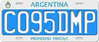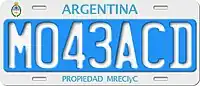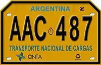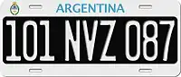 Argentine license plates (in Spanish, chapas patentes or simply patentes) are used to uniquely identify motor vehicles on the roads of Argentina. The current system employs three letters followed by three digits, issued consecutively, but the license plate system underwent significant changes before the use of this format.