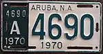 While license plates in Aruba may have been issued as early as 1924, few of these plates are known to exist. All plates issued through 1957 appear to have been 14 centimetres (5.5 in) in height by 36 centimetres (14 in) in width.