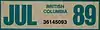 1925 | Embossed white serial on black plate with border line; "BRITISH COLUMBIA" at bottom and "25" at right | none | 12-345 | 1 to approximately 57-000 | |
