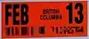 1938 | Embossed cream serial on brown plate with border line; "BRITISH COLUMBIA" at bottom and vertical "38" at right | none | 12-345 | 1 to approximately 97-000 | |