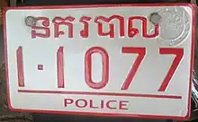 Cars owned by the police get the red plate with "នគរបាល" as the province of registration.