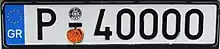 In September/October 2004 the euroband and international country code (GR) were added to the left and the typeface changed. In all other respects the previous system LLL–NNNN continued with the numbering allocation carrying on as from pre-2004.