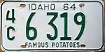 1964 As 1958 base, but with "IDAHO 64" at top "FAMOUS POTATOES" as on 1958 base A 12345