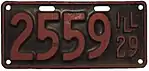 1929 | Red on black with border line; "ILL 29" at right | none | 1-234-567 | 1 to approximately 1-411-000 | |