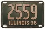 1938 | White on green; "ILLINOIS 38" at bottom | none | 1234 567 | 1 to approximately 1579 000 | |