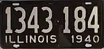 1939 | Yellow on black; "ILLINOIS 39" at top | none | 1234 567 | 1 to approximately 1639 000 | |