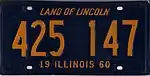 - ↑ "Illinois Auto Tags For 1960 Will Be Gold, Royal Blue". Chicago Tribune. July 14, 1959. p. B7.