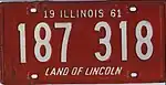 - ↑ "Illinois Auto Plates In '53 To Be Red On Buff". Chicago Tribune. May 26, 1952. p. 2.