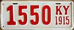 1915 Embossed red serial on white plate; "KY 1915" at right none 12345 1 to approximately 19500