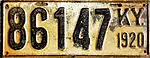 1920 Embossed black serial on white plate with border line; "KY. 1920" at right none 12345 1 to approximately 96000