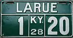 1928 Embossed white serial on green plate. Plate divided into four sections, each surrounded by border lines, with "KY. 28" in bottom center section, county name in top section and serial numbers in bottom left and bottom right sections none 12 34