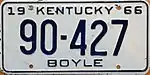 2. 1 2 3 Tanner, Eric N. "Kentucky License Plates". allaboutlicenseplates.com. Retrieved December 3, 2015.