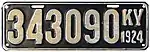 1924 Embossed white serial on dark blue plate with border line; "KY 1924" at right none 123456