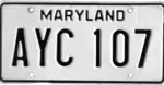 Embossed black serial on white plate with border line; "MARYLAND" centered at top none ABC 123 AAA 001 to approximately KHN 999