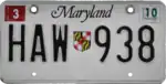 The U.S. state of Maryland first required its residents to register their motor vehicles in 1904. Registrants provided their own license plates for display until 1910, when the state began to issue plates.[1]