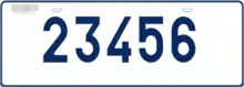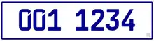 • 5 digit diplomatic license plates with black numbers on a blue background are in diplomat use.