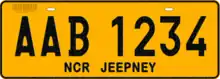 • Black on Yellow: Commercial vehicle or public utility vehicles