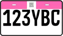 Motorcycle registration plates released since 2020 features color-coded strips to indicate the region where they are registered, in addition to the registration area prefixes.[6]