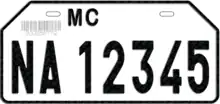 • TC (used for motorcycles and tricycles in public use or for-hire, placed in top left)