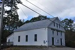 The Veterans' Memorial Hall, formerly the First Universalist Society Meeting House, is a historic community building on New Hampshire Route 32 in Richmond, New Hampshire. The 1+12-story clapboarded wood-frame building was built in 1837 by members of the local Universalist congregation. Richmond was the birthplace of Hosea Ballou, a theologian influential in the development of Universalism; he left the town before this building was built. As originally built, the meeting house had a small tower and belfry, which were removed in 1892 when the building was acquired by the local Grange. The building has seen only modest external alterations since then; the interior has had most of its religious trappings removed, but is also otherwise little altered.[2]