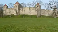 At the southeastern corner of the castle stands the so-called Eastern Prismatic Tower, built in the 14th century to protect the castle area from the east. South of this tower archaeological remains have been uncovered of walls of a medieval Eastern Castle Palace, which probably dates from the late 15th century and was pulled down before the mid-17th century.