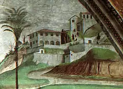 The villa in the 15th century, depicted by Domenico Ghirlandaio in the Tornabuoni Chapel of Santa Maria Novella