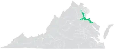 The district overlaps with Virginia's 1st, 7th, and 10th congressional districts, and with the 2nd, 13th, 28th, 31st, 40th, 50th, 51st, 54th, 87th, 88th, and 99th districts of the Virginia House of Delegates.[4]
