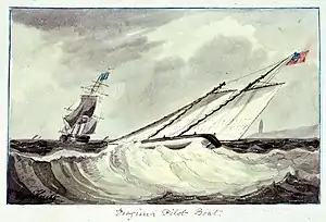 In 1840, there were only eight pilot boats in the New York fleet. They were the Phantom, No. 1; Washington, No. 2; New York, No. 3; Jacob Bell, No. 4; Blossom, No. 5; T. H. Smith, No. 6; John E. Davidson, No. 7; and the Virginia, No. 8.[5] The boat number "8" was painted as a large number on her mainsail, that identified her as belonging to the Sandy Hook pilots.