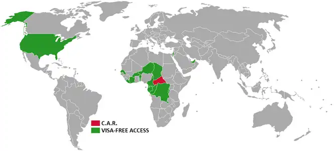 - ↑ "Visa-free travel for Emiratis to Central Africa". gulfnews.com. 30 September 2019.