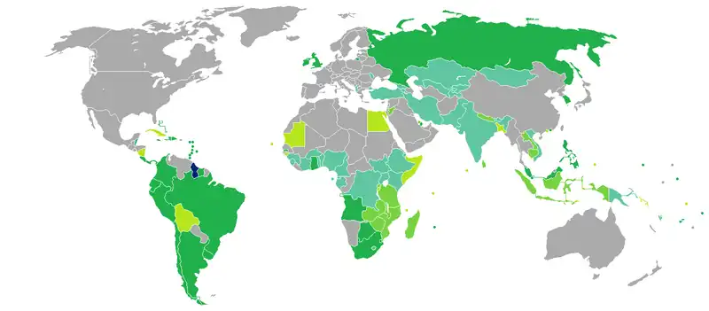 Visa requirements for Guyanese citizens are administrative entry restrictions by the authorities of other states placed on citizens of Guyana. As of 15 July 2023, Guyanese citizens have visa-free or visa-on-arrival access to 86 countries and territories, ranking the Guyanese passport 65th in terms of travel freedom according to the Henley Passport Index.[1]