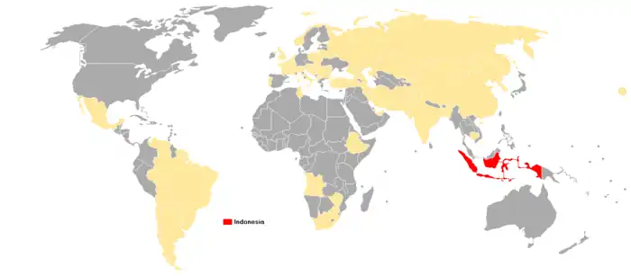 Visa requirements for Indonesian citizens are administrative entry restrictions imposed on citizens of Indonesia by the authorities of other states. As of December 2023, Indonesian citizens had visa-free or visa on arrival access to 76 countries and territories,[1] ranking the Indonesian passport 72nd in terms of travel freedom according to Henley Passport Index.[2] Indonesia is also a part of ASEAN and has reciprocal visa-free access to these countries.