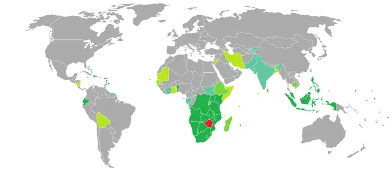 - ↑ Country list - Yellow fever vaccination requirements and recommendations; and malaria situation; and other vaccination requirement