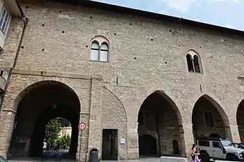 In 1355, after expanding the Visconti domains and in order to consolidate his power on Bergamo, Bernabò Visconti initiated the construction of the Citadel.[2] The Citadel incorporated a pre-existing fortress and a section of the nearby medieval walls. It thus became part of the defensive system of the Città Alta, strengthening the western sector on the San Giovanni hill and integrating the fortification in the eastern sector on Sant'Eufemia hill. The Citadel consisted of an enclosure fortified with towers. It was closed to the north by the Hospitio Magnum, the seat of the military garrison.[1]