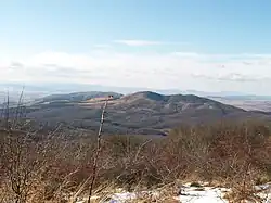 Viskyar Mountain (Bulgarian: Вискяр) is a minor range of hills in western Bulgaria rising to 1077 m (Mechi Kamak Peak), and bounded by Lyulin Mountain to the southeast, Sofia Valley to the northeast, Zavalska Mountain to the northwest, and Graovo Valley to the southwest. It is separated from the Lyulin and Zavalska hills by Raduyska Saddle and Yaroslavska Saddle, respectively. The Saints Peter and Paul Monastery situated on the northern slopes of Viskyar is a popular tourist destination.