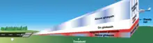 The pulsating visual approach slope indicator (PVASI) is a system similar in purpose to a VASI, but only consists of one piece of equipment. It indicates the pilot's height on approach with a mix of red and white, steady and pulsating light. Pulsating white light indicates that the aircraft is too high, whereas steady white indicates being on the glide path. Steady red light is meant to show a position only slightly below glide path, with pulsating red light being indicative of a position well below glide path.[4] This type of system is less prevalent than other visual glide slope indicators like regular VASIs or PAPIs, as of May 2022 there were only 84 PVASIs installed at 51 airports and heliports in the United States and its territories according to Federal Aviation Administration data, compared to 6730 PAPIs and 623 VASIs.[5]