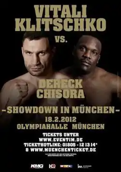 Vitali Klitschko vs Derek Chisora, billed as Showdown in Munich, was a professional boxing match that was contested between WBC heavyweight champion, Vitali Klitschko, and the WBC's number 15 ranked contender, Derek Chisora. The bout took place on 18 February 2012 at the Olympiahalle, with Klitschko winning by unanimous decision.