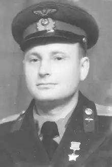 Vladimir Yegorovich Kabanov (Russian: Владимир Егорович Кабанов; 22 August 1918 – 17 August 1977) was a Soviet Air Force captain and Hero of the Soviet Union. Kabanov was awarded the title for flying 114 attack sorties during World War II. Kabanov continued to serve in the Soviet Air Force until his retirement in 1958. He worked as a goods manager in Krasnodar.[1]